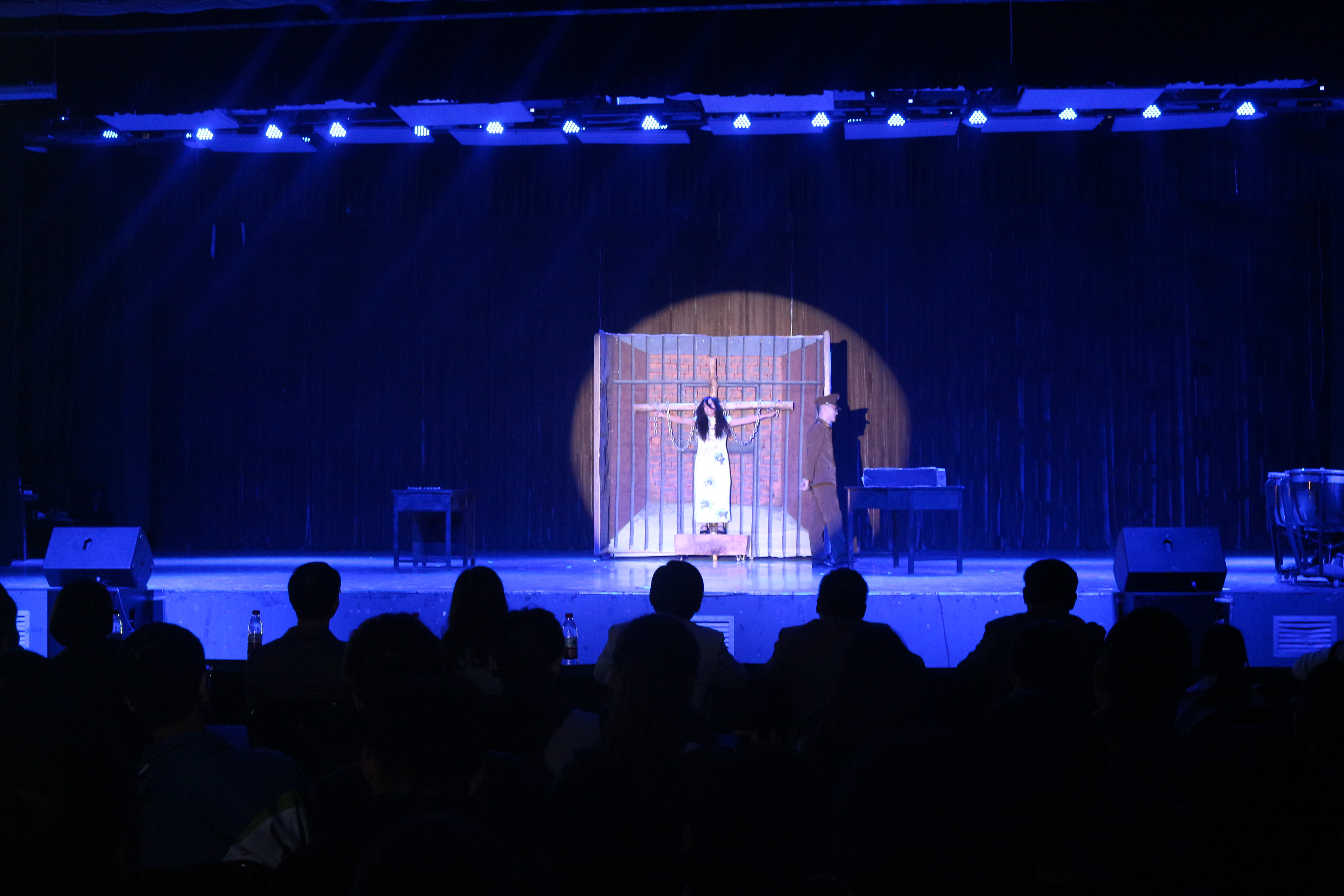 整场演出,剧幕衔接紧凑,剧情跌宕起伏,故事情节构思巧妙,演员的姿态、动作、对话、独白直接冲击着观演师生的视觉和听觉,沁润心灵,引发思考。在高潮部分引发在座师生阵阵掌声,演员感同身受的人物形象塑造让观演师生为之动容。