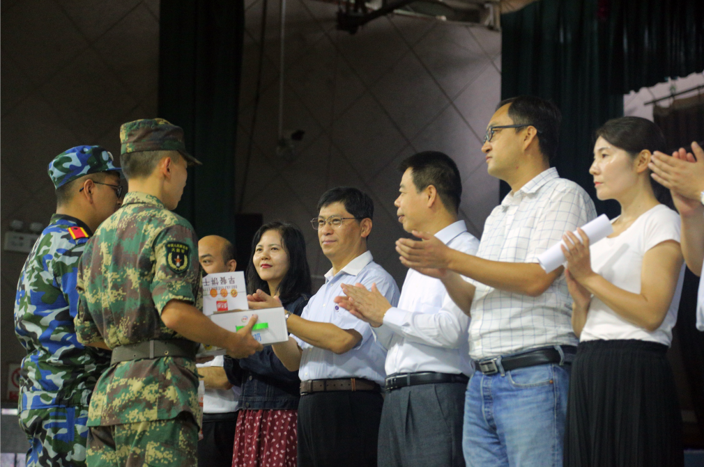 随后,院领导为军训教官及2019级新生送上慰问品,鼓励大家再接再厉,圆满完成军训任务。