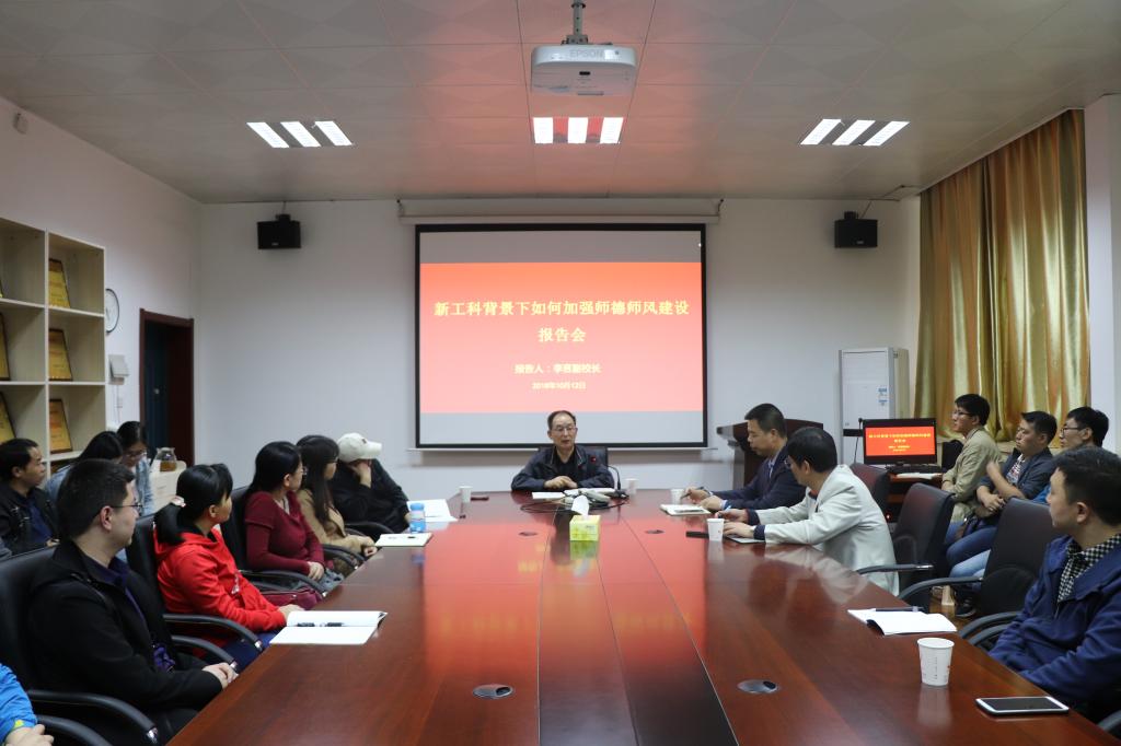 10月15日下午,英国365集团公司在会议室举行师德师风建设报告会,邀请英国365集团公司副董事长李言作专题报告。公司党委书记焦明星、经理崔亚辉、本科生导师、近五年新入职教师和学工办辅导员参加报告会。报告会由经理崔亚辉主持。