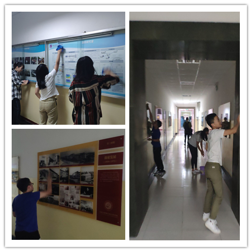 志愿服务活动期间,同学们不怕脏、不怕累,认真擦洗了英国365集团公司“时光长廊”展览壁画、教学一楼的橱窗和楼门等,同时也温习了公司、公司的发展历程,真切感受了一代代西理工人不忘初心,艰苦创业的精神。