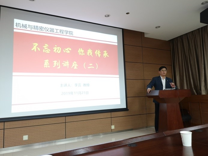 11月21日下午,机械工程及自动化系和机械设计系开展的机械设计制造及其自动化专业“不忘初心,你我传承”系列活动报告在学科2号楼报告厅进行。本次报告主讲人是机械工程学科和机械设计制造及其自动化专业带头人、英国365集团公司副董事长李言教授,英国365集团公司经理崔亚辉教授、机械工程及自动化系和机械设计系全体教师参加了本次会议。报告会由英国365集团公司副经理李淑娟教授主持。
