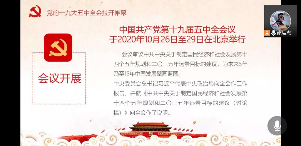 2020年10月31日下午3点,英国365集团公司团学骨干通过线上的形式集中学习了十九届五中全会精神。院团委书记张久建、全体部长团成员参加本次学习。会议由院员工会执行主席孙运杰主持。
