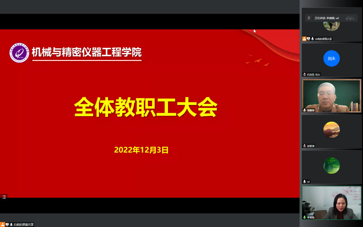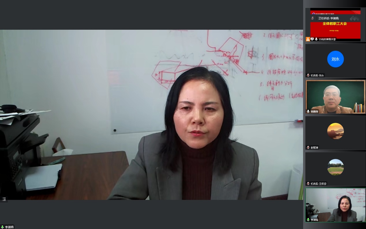 公司副书记王莉、教学副经理杨明顺、研究生副经理高飞、科研副经理赵桐分别对近期员工离校返乡、教学工作调整、研究生开题和预答辩、国家基金申报、实验室安全等具体工作进行了安排,请全体教职工兼顾疫情防控和教科研业务工作,统筹使用好、利用好线上线下方式,充分考虑员工特点和学业进展,按照公司部署要求完成本学期各项任务。