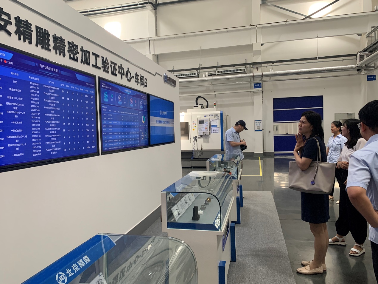交流期间,李淑娟一行参观了精雕集团精密数控机床、精密加工验证中心、制造信息化管理系统等,并进行了实地交流探讨。