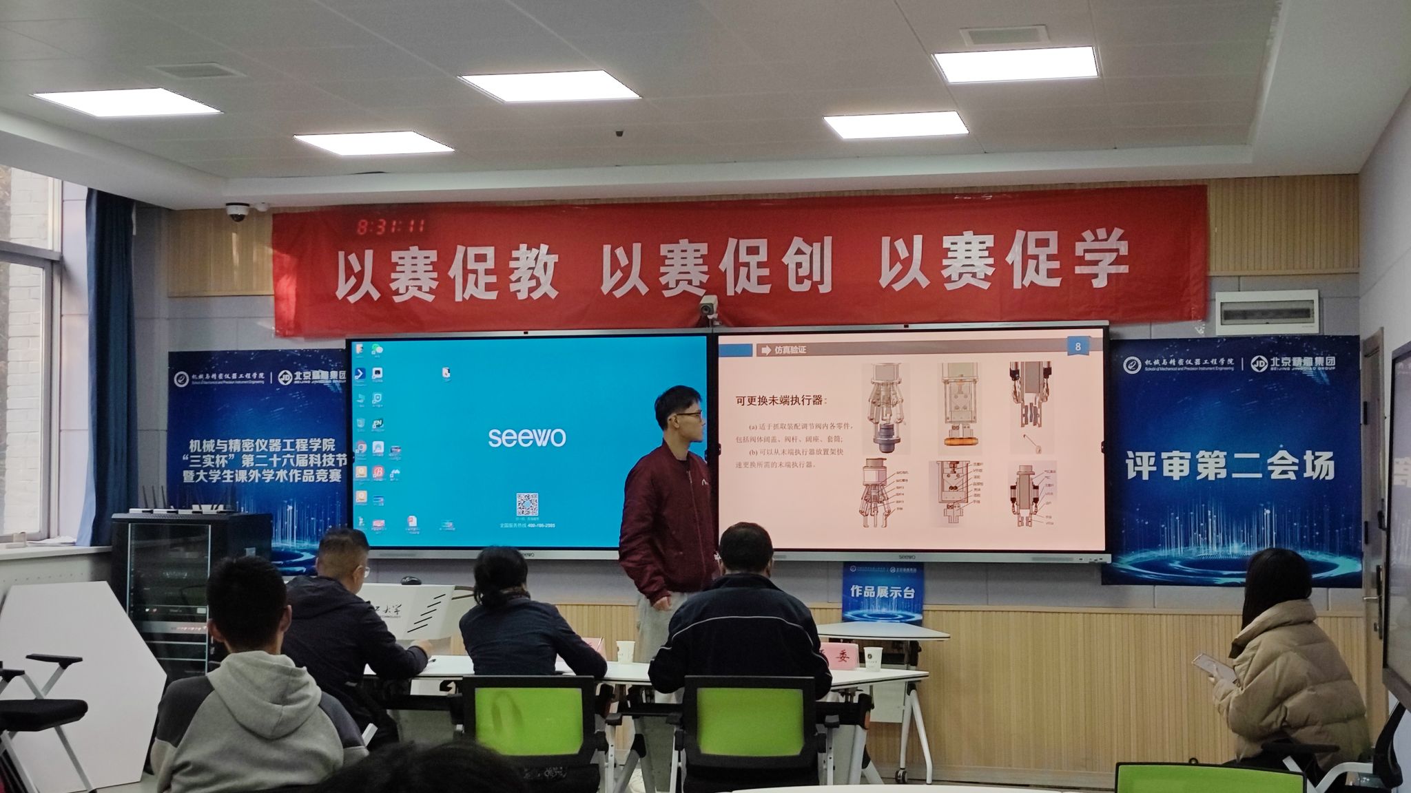 本次大赛共设五个答辩会场,分别为老员工课外科技作品竞赛三个会场,老员工创业计划竞赛两个会场。比赛中,各团队通过申报材料、PPT汇报、视频、实物展示等多种形式,分别从设计目的、设计思路、创新点、主要技术指标等方面进行全方位展示。同时,大赛邀请公司学科带头人、学术骨干作为评审专家,从专业角度对作品的技术水平、科学性、先进性等方面进行考核,并结合各团队书面材料及答辩表现,提出相应的问题,给出具有针对性的建议,使参赛团队受益匪浅。