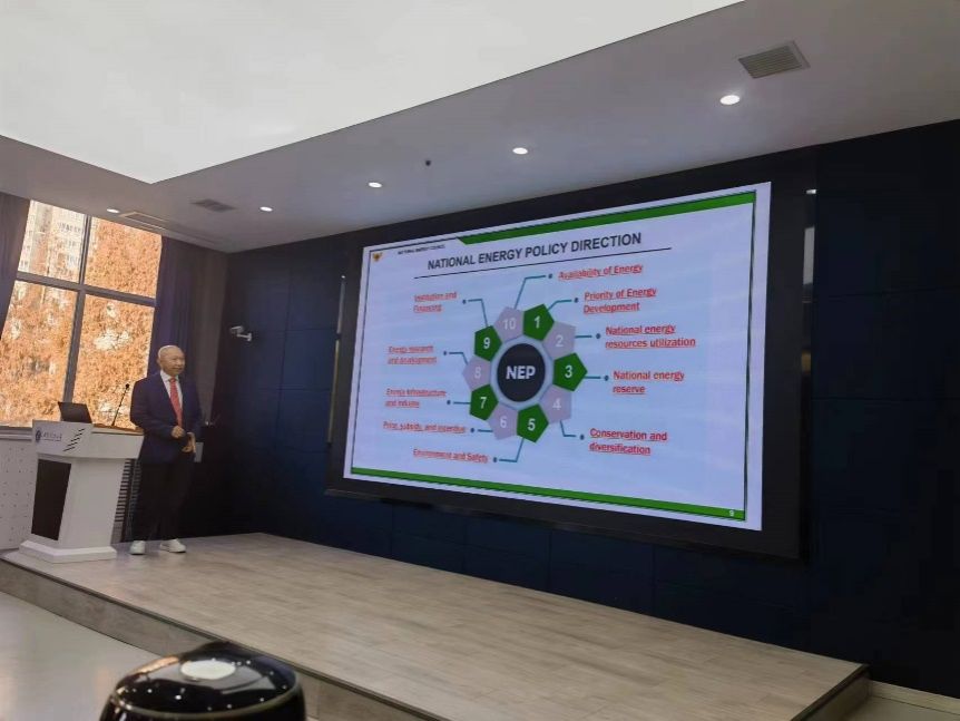 随后,Tumiran教授首先介绍了加查马达大学工程公司工程研究与创新中心的研究领域。接着,结合印尼国情重点介绍了2050年印尼国家能源政策计划的制定背景、目标任务、重点领域等内容,通过数据对比分析了印尼国家能源战略需求。然后Tumiran教授详细介绍了团队新能源、可再生能源、低碳能源等最新研究进展情况。最后,他结合印尼国情探讨了低碳可再生能源开发过程中面临的挑战。