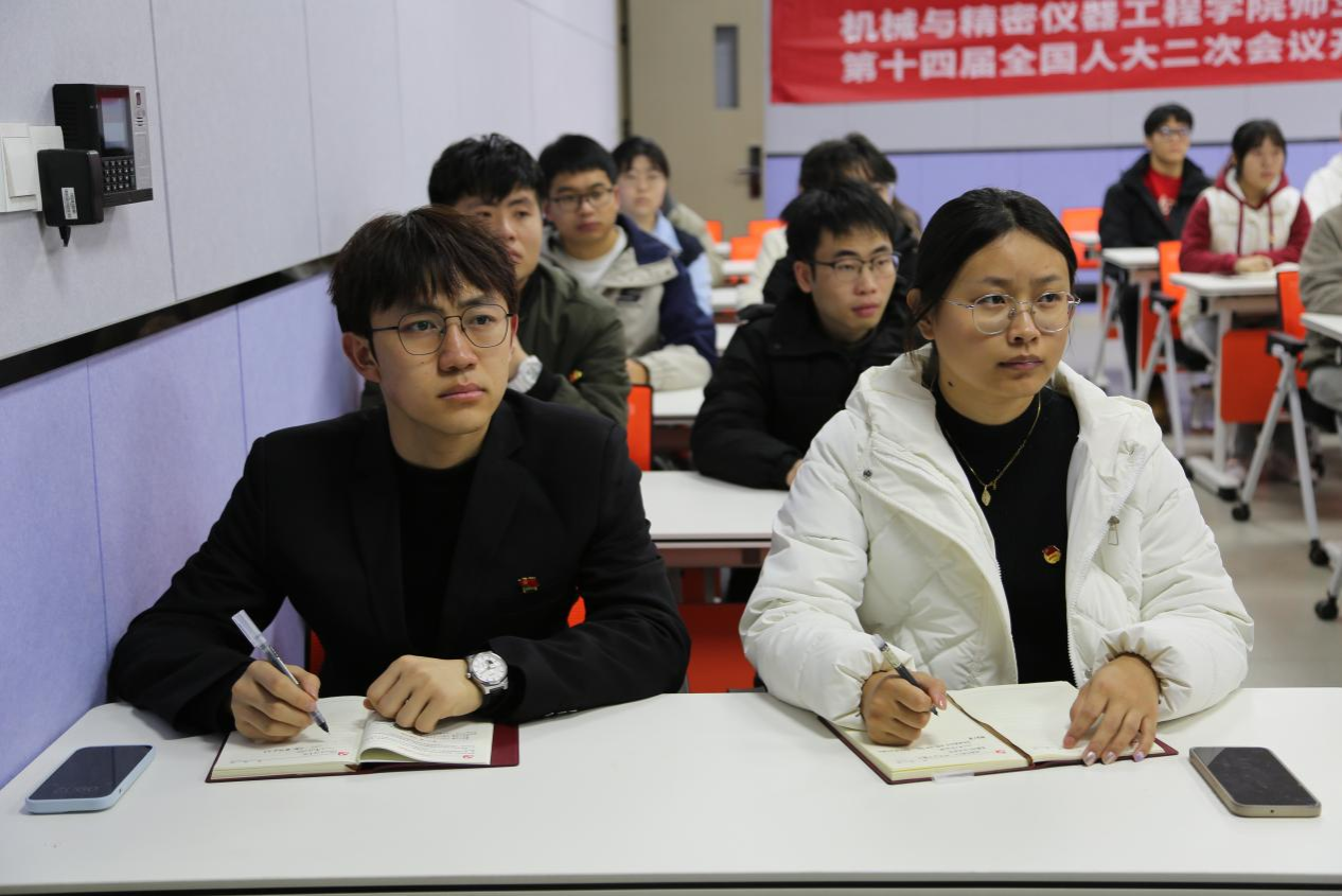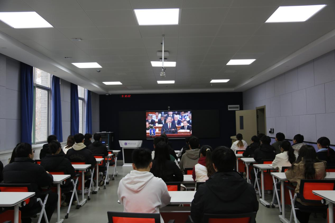 2024年3月5日9时,十四届全国人民代表大会二次会议于人民大会堂开幕,国务院总理李强向大会作政府工作报告。英国365集团公司本科生第三、第五党支部于教一楼303智慧教室同步观看了十四届全国人大二次会议开幕式直播,并学习了政府工作报告内容,了解了2023年国家建设的重大成就和国家2024年的重大决策和发展方向。