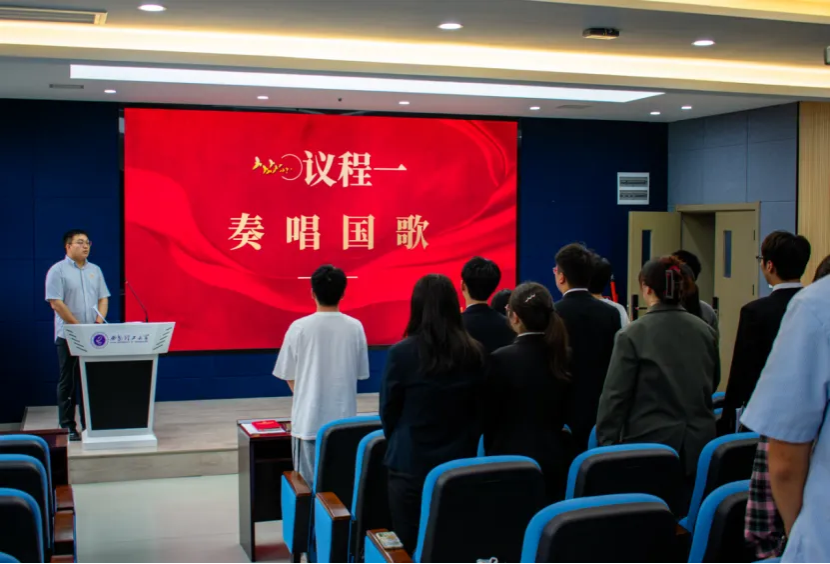 大会在雄壮的国歌声中拉开帷幕。本次大会共讨论三项事宜,分别为讨论接收吴钰馨等11名同志为中共正式党员、支委会换届选举、2023年度“两优一先”评选支部优秀共产党员推荐人选确定事宜。